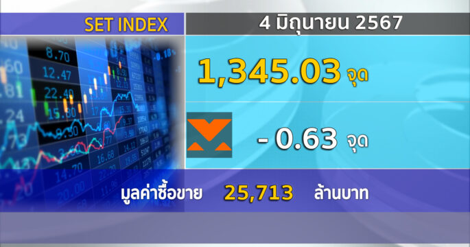 ตลาดหลักทรัพย์ฯ ปิดช่วงเช้าวันนี้ 1,345.03 จุด ลบ 0.63 จุด (-0.05%) มูลค่าซื้อขายราว 25,713 ล้านบาท