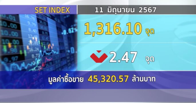 SET ปิดวันนี้ที่ 1,316.10 จุด ลดลง 2.47 จุด (-0.19%) มูลค่าการซื้อขาย 45,320.57 ล้านบาท