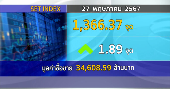 SET ปิดวันนี้ที่ 1,366.37 จุด เพิ่มขึ้น 1.89 จุด (+0.14%) มูลค่าการซื้อขาย 34,648.93 ล้านบาท