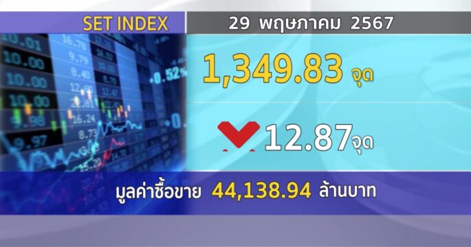 ตลาดหลักทรัพย์ฯ ปิดช่วงเช้าวันนี้ 1,343.82 จุด ลดลง 6.01 จุด (-0.45%) มูลค่าซื้อขายราว 23,602 ล้านบาท