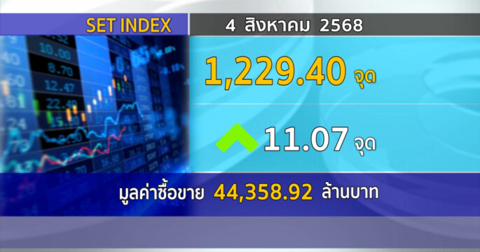 กทม. 4 ส.ค.- ตลาดหลักทรัพย์ฯ ปิดวันนี้ 1,229.40 จุด เพิ่มขึ้น 11.07 จุด (+0.91%) มูลค่าซื้อขาย 44,358.92 ล้านบาท SET ปิดวันนี้ที่ 1,229.40 จุด เพิ่มขึ้น 11.07 จุด (+0.91%) มูลค่าซื้อขาย 44,358.92 ล้านบาท นักวิเคราะห์ฯ เผยตลาดหุ้นไทยวันนี้ขึ้นมาดีกว่าคาด ภาพรวมรีบาวด์ระยะสั้นใกล้เคียงกับภูมิภาคฟื้น รวมทั้งคาดหวังกระแส Fund Flow แนะติดตาม บจ.รายงานงบ Q2/68 และครึ่งเดือนหลังติดตามการเมืองไทย ช่วงนี้ตลาดให้น้ำหนักกับตัวเลขเศรษฐกิจสหรัฐเป็นพิเศษ โดยเฉพาะดัชนี PMI ภาคบริการ โดยให้กรอบแนวรับ 1,220-1,215 จุด แนวต้าน 1,238 จุด – สำนักข่าวไทย