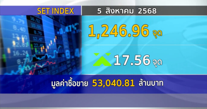กทม. 5 ส.ค.- ตลาดหลักทรัพย์ฯ ปิดวันนี้ 1,246.96 จุด เพิ่มขึ้น 17.56 จุด (+1.43%) มูลค่าซื้อขาย 53,040.81 ล้านบาท SET ปิดวันนี้ที่ 1,246.96 จุด เพิ่มขึ้น 17.56 จุด (+1.43%) มูลค่าซื้อขาย 53,040.81 ล้านบาท นักวิเคราะห์ฯ ระบุตลาดหุ้นไทยวันนี้แกว่งแดนบวกจากคาดเฟดลดอัตราดอกเบี้ยเป็นครั้งแรกของปีหลังตัวเลขจ้างงานนอกภาคเกษตรสหรัฐต่ำคาด และดอลลาร์อ่อนค่าหนุน fund flow เข้าเอเชีย รวมถึงภาพรวมงบ บจ.ไตรมาส 2/68 ไม่แย่ กลุ่มหุ้นเด่น คือหุ้น laggard กลุ่มโรงพยาบาล-ค้าปลีก รวมทั้งหุ้น infra-tech เช่น GULF TRUE ADVANC แนวโน้มพรุ่งนี้ลุ้นเดินหน้าต่อ กรอบแนวต้าน 1,255 และ 1,260 จุด แนวรับ 1,230 จุด -สำนักข่าวไทย