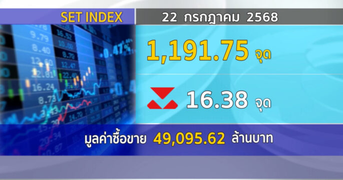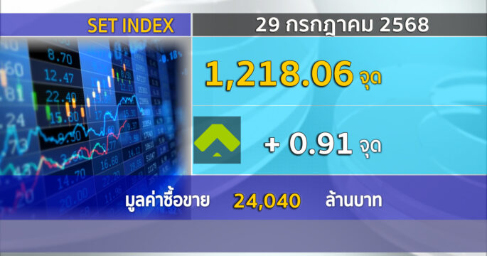 กทม. 24 ก.ค.- ตลาดหลักทรัพย์ฯ ปิดวันนี้ 1,212.49 จุด ลดลง 7.13 จุด (-0.58%) มูลค่าซื้อขายราว 46,887.88 ล้านบาท SET ปิดวันนี้ที่ 1,212.49 จุด ลดลง 7.13 จุด (-0.58%) มูลค่าซื้อขายราว 46,887.88 ล้านบาท นักวิเคราะห์ฯ ระบุตลาดหุ้นปรับลงจากสถานการณ์ชายแดนไทย-กัมพูชายกระดับความรุนแรง กดดันให้มีแรงขายหุ้นใหญ่ที่ขึ้นมามากแล้วและหุ้นที่มีธุรกิจในกัมพูชา แต่มองผลกระทบต่อภาพรวมตลาดยังจำกัด รวมถึงดัชนีขึ้นมาทดสอบ 1,210-1,230 จุดจึงเห็นแรงขายออกมาบ้าง แนวโน้มพรุ่งนี้แนะนำให้ติดตามผลเจรจาการค้าไทย-สหรัฐลุ้นได้ภาษีต่ำกว่า 19% สร้างเซอร์ไพรส์เชิงบวก ให้แนวต้าน 1,230 จุด แนวรับ 1,190 จุด – สำนักข่าวไทย