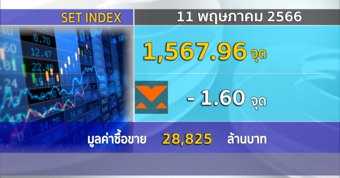 ตลาดหลักทรัพย์ฯ ปิดช่วงเช้าวันนี้ 1,567.96 จุด ลดลง 1.60 จุด (-0.10%) มูลค่าการซื้อขาย 28,825 ล้านบาท