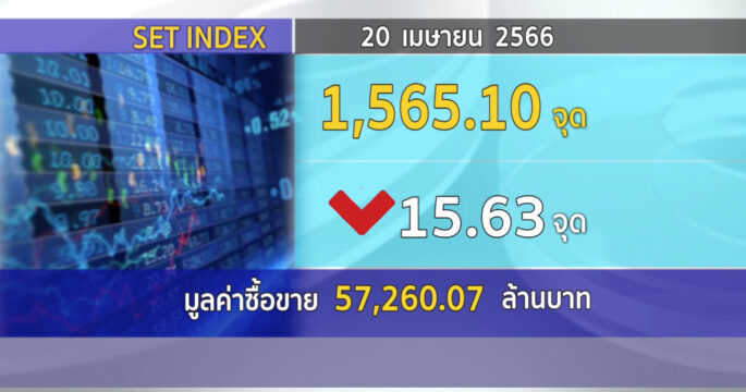 SET ปิดวันนี้ที่ 1,565.10 จุด ลดลง 15.63 จุด (-0.99%) มูลค่าการซื้อขาย 57,260.07 ล้านบาท