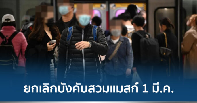 ฮ่องกงยกเลิกบังคับสวมหน้ากากอนามัยตั้งแต่ 1 มี.ค.