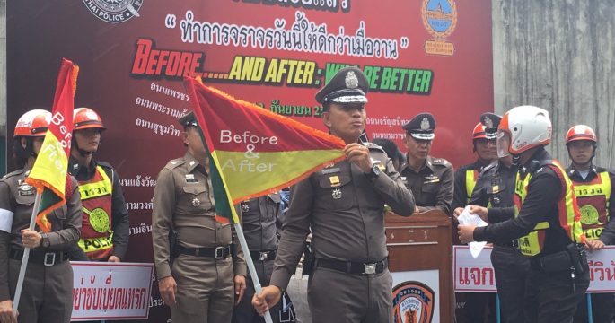 มีการมอบธง ปล่อยแถวชุดปฎิบัติการ “ทำจราจรวันนี้ให้ดีกว่าเมื่อวาน” เป็นการ Kick off รณรงค์สร้างความเข้าใจ กระตุ้นให้ผู้ใช้รถใช้ถนนเกิดความตื่นตัว ร่วมแก้ไขปัญหาการจราจร