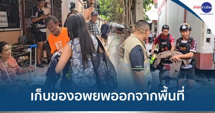 ชาวบ้านชุมชนหลังแฟลตตำรวจ สน.สามเสน เก็บของอพยพ