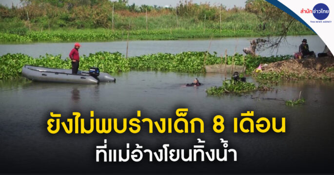หลังแม่เด็กวัย 8 เดือน รับสารภาพทำลูกหลุดมือ ก่อนนำไปโยนทิ้งน้ำ นักประดาน้ำก็ยังค้นหาอย่างต่อเนื่อง วันนี้เน้นริมแม่น้ำท่าจีน ขณะที่พ่อของนาย พ. และผู้ใหญ่บ้าน ยังไม่เชื่อคำให้การของแม่เด็ก พยายามตามหาในจุดอับต่างๆ โดยเฉพาะบ่อจอกตรงข้ามหมู่บ้าน ที่เพิ่งได้เบาะแสใหม่มา