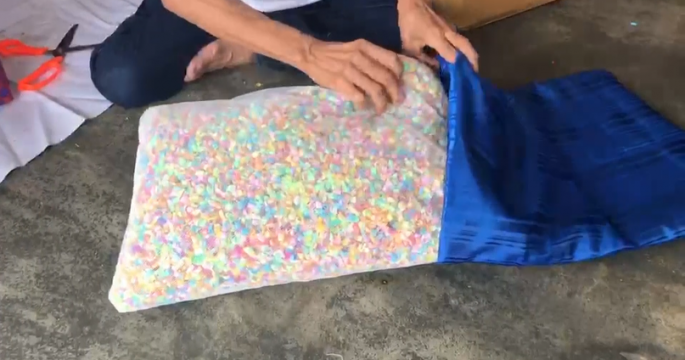 Single-use plastic straws are put into good use as pillow stuffing by people with disabilities in the southern province of Trang.