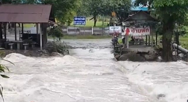 Officials before dawn Saturday helped rescued about half a dozen tourists trapped by forest runoff due to heavy rain in Nakhon Nayok province.