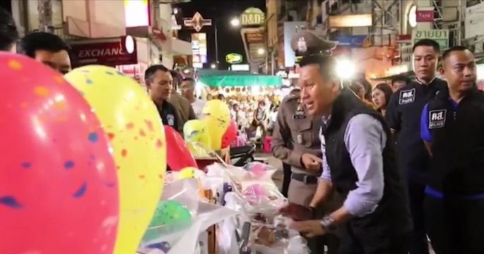 Nine people were arrested for selling nitrous oxide or laughing gas to foreign tourists on Khao San Road.