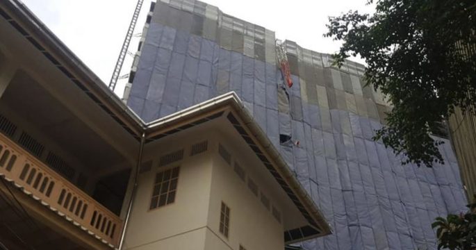 Ten students were injured as a crane at a construction site collapsed onto a building of Assumption Convent School in Bangkok’s Bang Rak district.