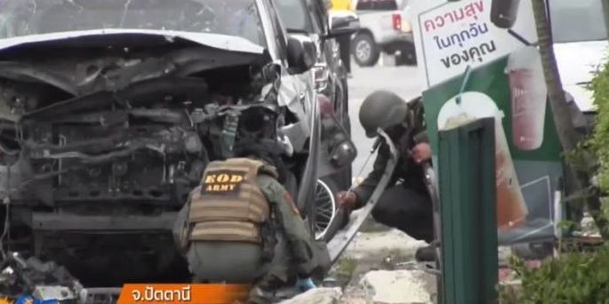 A motorcycle bomb killed two people and injured 22 others at a market in the southern border province of Pattani on Monday.
