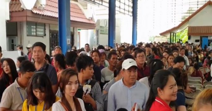 Around ten thousand Cambodians have flocked to Thailand for travelling through a border checkpoint in Sa Kaeo during Cambodia’s National Holiday from May 13-15.