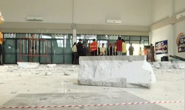 A four-year-old girl was killed when a school building wall collapsed during heavy rain and strong wind in Khon Kaen province yesterday.