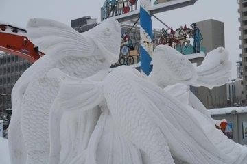 A Thai team won the top prize at the 46th Sapporo Snow Sculpture contest with their work, depicting Thai national aquatic animal Siamese fighting fish.