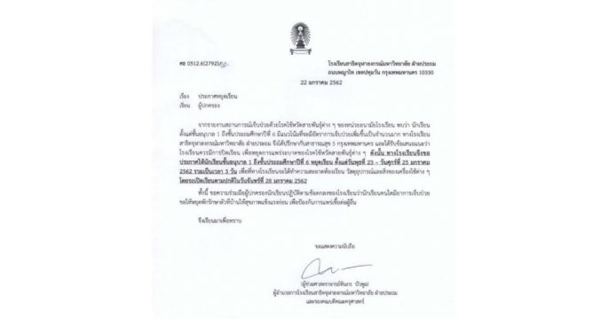 Chulalongkorn University Demonstration Elementary School has been closed for three days to contain the flu outbreak.