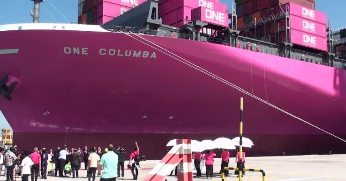 The 14,000 -TEU M.V. ONE COLUMBA vessel has become the largest ever container ship to call at Thailand’s Leam Chabang port.