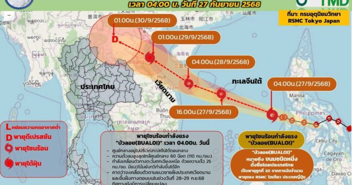 กรุงเทพฯ 30 ก.ย. – กรมชลประทาน ปรับเพิ่มการระบายน้ำเขื่อนเจ้าพระยา ที่ 2,300 ลบ.ม./วินาที หลังพายุ “บัวลอย” ทำฝนตกหนัก ขณะที่เขื่อนพระราม 6 ยังระบายน้ำเกินเกณฑ์ “ธงแดง” กรมชลประทาน รายงานว่า จากอิทธิพลพายุ “บัวลอย” ร่วมกับร่องมรสุมกำลังแรงที่พาดผ่านภาคเหนือตอนล่าง ภาคกลางตอนบน และภาคตะวันออกเฉียงเหนือ ประกอบกับมรสุมตะวันตกเฉียงใต้ที่พัดปกคลุมทะเลอันดามัน ประเทศไทย และอ่าวไทย มีกำลังแรงขึ้นตอนบนที่ไหลมาสมทบอย่างต่อเนื่องและฝนที่ตกในระยะนี้ ทำให้ตั้งแต่เมื่อวานนี้ ตั้งแต่เวลา 13.00 – 19.00 น. ได้ทยอยปรับเพิ่มการระบายน้ำผ่านเขื่อนเจ้าพระยา จ.ชัยนาท จากอัตรา 2,200 ลบ.ม./วินาที เป็น 2,300 ลบ.ม./วินาที และคงอัตราดังกล่าวต่อเนื่องมาจนถึงขณะนื้ เพื่อให้สอดคล้องกับปริมาณน้ำทางตอนบนที่ไหลมาสมทบอย่างต่อเนื่องและฝนที่ตกในระยะนี้ ขณะที่ระดับน้ำท้ายเขื่อนเจ้าพระยายังมีแนวโน้มเพิ่มขึ้น โดยได้บริหารจัดการน้ำเหนือเขื่อนเจ้าพระยา ด้วยการหน่วงน้ำไว้ด้านเหนือ พร้อมรับน้ำเข้าระบบชลประทานทั้ง 2 ฝั่ง ตามศักยภาพของคลอง เพื่อลดผลกระทบให้ได้มากที่สุด ส่งผลให้พื้นที่นอกคั้นกันน้ำบริเวณด้านท้ายเขื่อนที่ได้รับผลกระทบ ได้แก่-คลองโผงเผง, วัดไชโย, อ.ป่าโมก […]