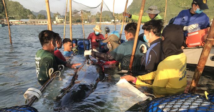 สัตวแพทย์เร่งรักษาวาฬเพชฌฆาตดำเกาะเตียบ หลังพบติดเชื้อเรื้อรัง อาการโดยรวมยังอ่อนแรง