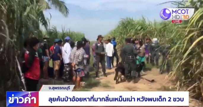 ตำรวจไม่ละความพยายามตามหาเด็ก 2 ขวบชาวเมียนมา หายตัวลึกลับในไร่อ้อย 8 วัน โดยผู้ว่าฯ มั่นใจเด็กไม่ได้อยู่ในไร่อ้อย มุ่งปมสืบสวนใหม่ อาจถูกลักพาตัว หรือถูกฆ่า แต่ล่าสุดชาวบ้านได้กลิ่นเหม็นเน่าโชยมาจากไร่อ้อย เจ้าหน้าที่จึงปูพรมค้นหาอีกครั้ง