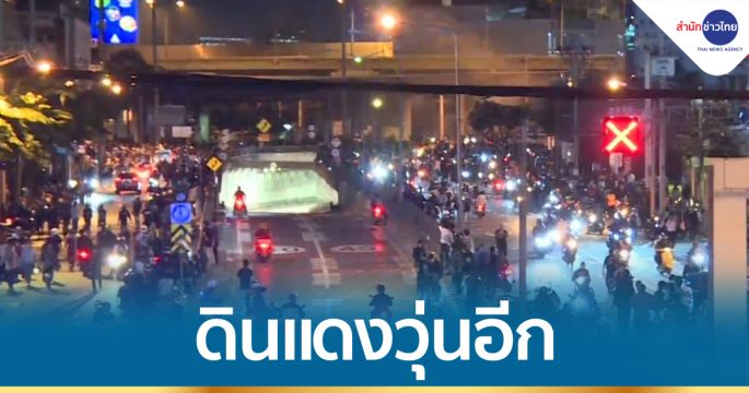 การชุมนุมบริเวณแยกดินแดงวุ่นอีก ตำรวจยิงแก๊สน้ำตา พร้อมกับฉีดน้ำสกัดกลุ่มผู้ชุมนุม ขณะที่ผู้ชุมนุมขว้างปาขวดแก้ว ประทัดยักษ์ พลุดาวกระจาย ใส่ตำรวจควบคุมฝูงชน