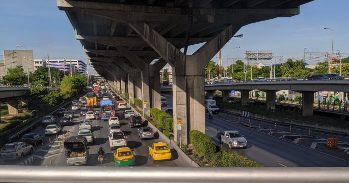 จราจรเช้าวันพฤหัสบดี ถนนวิภาวดี – รังสิต ขาเข้า มุ่งหน้าแยกลาดพร้าว รถมาก ติดขัดเป็นช่วงๆ