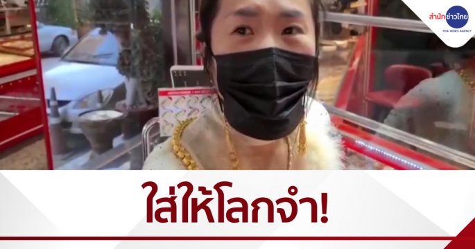 เจ้าของร้านทองในตลาดพานทอง อ.พานทอง จ.ชลบุรี โชว์สายคล้องแมสก์ทองคำหนัก 10 บาท