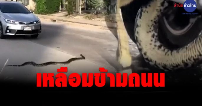 งูเหลือมยาวกว่า 4 เมตร เลื้อยข้ามถนน แล้วเข้าไปที่ใต้ท้องรถในบ้านหลังหนึ่ง เจ้าหน้าที่ใช้เวลากว่า 2 ชั่วโมงจึงจับได้