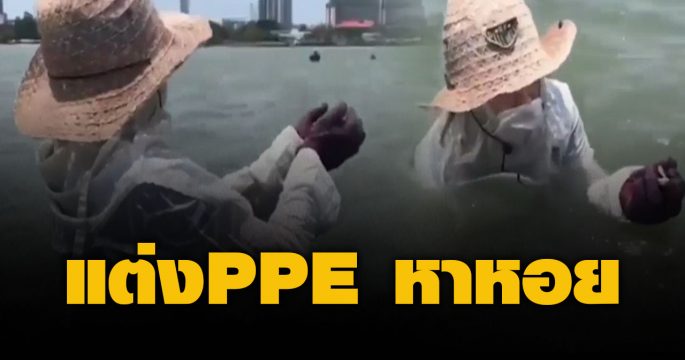 บรรยากาศหาหอยเขตพื้นที่ทะเลอำเภอบางละมุง จ.ชลบุรี ท่ามกลางกระแสว่าเจ้าหน้าที่ไม่อนุญาตให้ประชาชนหาหอยในทะเล เนื่องจากกลัวการติดเชื้อโรคโควิด แต่ก็มีชาวบ้านออกมาหาหอยไปรับประทาน เพราะช่วงนี้จะไม่มีรายได้ ชาวบ้านที่เดินทางมาหาหอยมีคนหนึ่งซึ่งสวมชุด ppe ชุดขาวที่ไว้สวมใส่ป้องกันโควิดและเชื้อโรคต่างๆ
