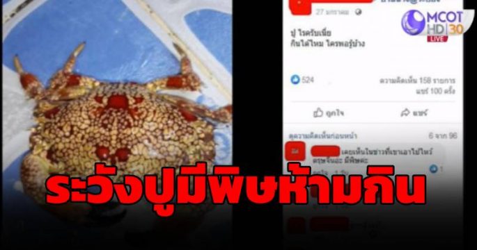 หนุ่มโพสต์ เจอปูสีสันสดใส หน้าตาน่ากิน ก่อนมารู้ความจริง ต้องรีบเข้าโรงพยาบาลอย่างเร่งด่วน