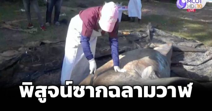 ผ่าพิสูจน์ซากฉลามวาฬตาย ที่เกาะลิบง จังหวัดตรัง สันนิษฐานเบื้องต้น อาจป่วยตาย
