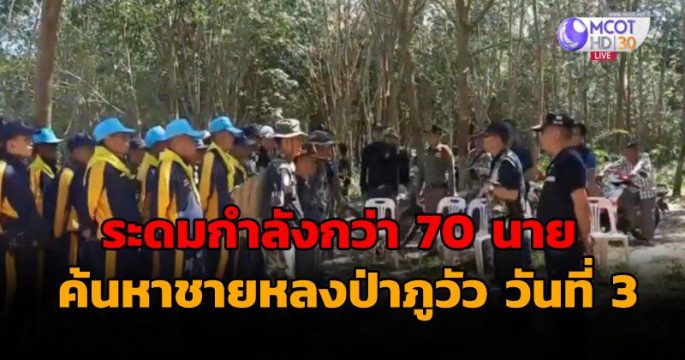 เจ้าหน้าที่ระดมกำลังกว่า 70 นาย ปูพรมค้นหาชายหลงป่าภูวัว จ.บึงกาฬ ต่อเนื่องวันที่ 3 แต่ยังไร้วี่แวว ญาติเป็นห่วงหวั่นได้รับอันตราย