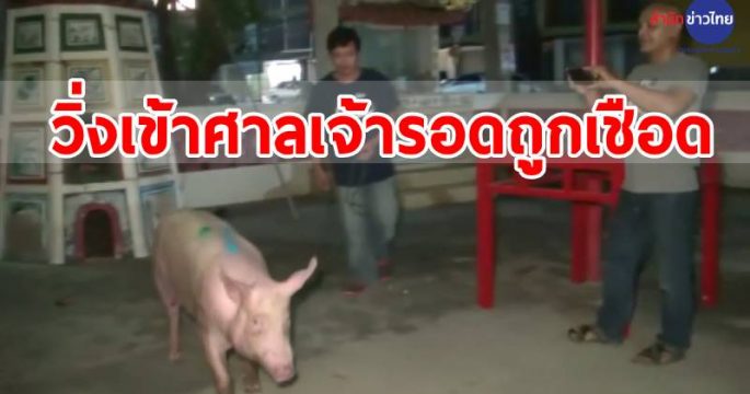 รอดถูกเชือด! “เจ้าบุญรอด” หมูกระโดดลงจากรถและเดินไปที่ศาลเจ้า เจ้าของหมูบอกเอาหมูตัวนี้แล้วใครอยากได้ยกให้