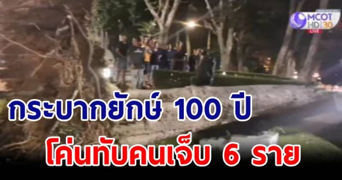 ต้นกระบากยักษ์ อายุประมาณ 100 ปี โค่นในสวนสาธารณะ เขตเทศบาลนครตรัง ทับรถ 6 ล้อพังเสียหาย มีผู้บาดเจ็บ 6 คน คาดฝนตกหนักติดต่อกันทำให้ดินอ่อนตัว