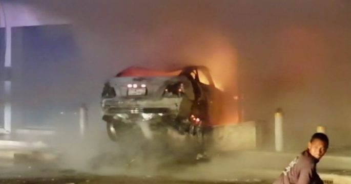 เก๋งซิ่งเร็วแรงพุ่งชนร้านสะดวกซื้อ ตรงข้ามซอยวัดสะแก ถนนปทุม-เสนา หมู่ 1 ต.สามโคก อ.สามโคก จ.ปทุมธานี ไฟลุกท่วม คนขับเจ็บหนักแต่หนีออกทัน พนักงานในร้านเผ่นกระเจิง ก่อนไฟลามวอดทั้งร้าน