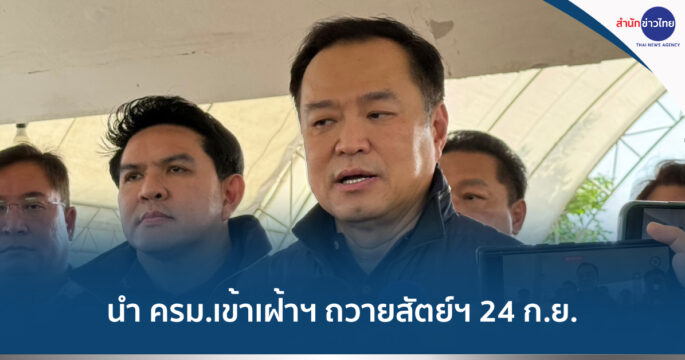 อ่างทอง 20 ก.ย. – “นายกฯ อนุทิน” นำ ครม. เข้าเฝ้าฯ ถวายสัตย์ปฏิญาณ 24 ก.ย.นี้ ก่อนนัดประชุม ครม. แบ่งงานรองนายกฯ-ตั้งเลขาฯ จากนั้นจะนัดประธานรัฐสภา แถลงนโยบายให้เร็วที่สุด นายอนุทิน ชาญวีรกูล นายกรัฐมนตรีและรัฐมนตรีว่าการกระทรวงมหาดไทย ให้สัมภาษณ์ว่า ในวันที่ 24 กันยายนนี้ จะนำคณะรัฐมนตรีเข้าเฝ้าฯ ถวายสัตย์ปฏิญาณ ซึ่งถือว่าเป็นพระมหากรุณาธิคุณ เป็นวันมหามงคล เพราะเป็นวันมหิดลด้วย พวกเรารู้สึกดีใจ หลังจากนั้นได้นัดไว้เบื้องต้นว่าจะมีการประชุมคณะรัฐมนตรีนัดแรก แต่ไม่ใช่การประชุมนัดพิเศษหรืออะไร เพราะเราจะได้แบ่งงาน วางหน้าที่ให้กับรองนายกรัฐมนตรีรับผิดชอบ รวมถึงการเสนอแต่งตั้งเลขาธิการนายกรัฐมนตรี ทุกคนจะได้ทำงานทันที หลังจากนั้นจะนัดประธานรัฐสภาเพื่อทำการแถลงนโยบายรัฐบาลต่อรัฐสภา ซึ่งเราตั้งใจให้เร็วที่สุด แต่ก็แล้วแต่ความกรุณาของประธานรัฐสภา รวมถึงสมาชิกของ 2 สภา.-319-สำนักข่าวไทย