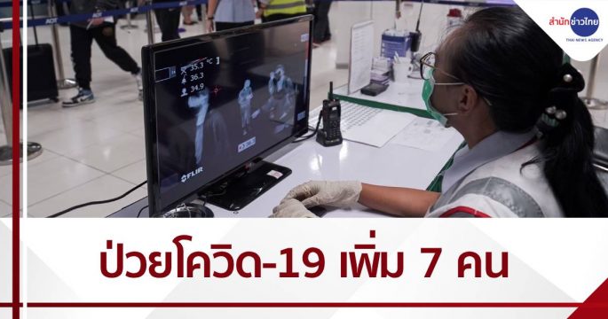 สถานการณ์การติดเชื้อ COVID-19 ประเทศไทย มีผู้ป่วยรายใหม่ 7 ราย ผู้ป่วยยืนยันสะสม 3,622 ราย หายป่วยแล้ว 3,439 ราย เสียชีวิตสะสม 59 ราย