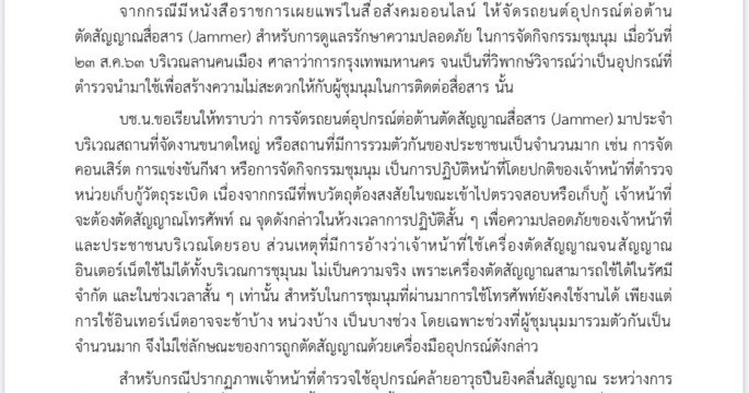 บช.น. ชี้แจงกรณีใช้รถตัดสัญญาณ ในการจัดกิจกรรมชุมนุม เมื่อวันที่ ๒๓ ส.ค.๖๓