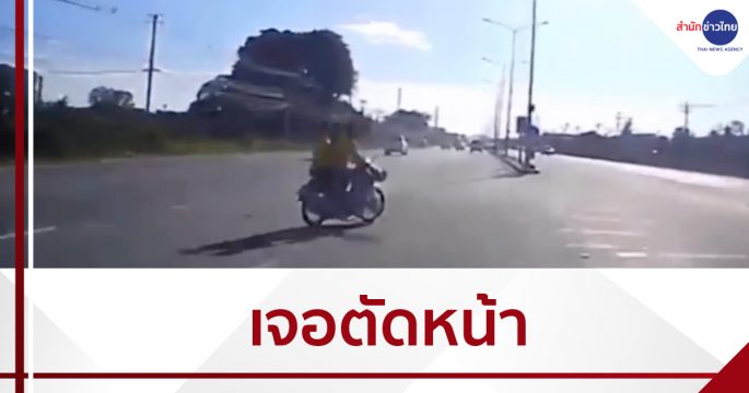 วินาทีสุดหวาดเสียว รถยนต์วิ่งเลนขวา เจอจักรยานยนต์ตัดหน้า หักหลบกะทันหัน