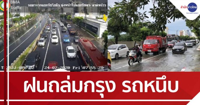 ฝนถล่มกรุง ถนนรัชดาภิเษก ขาเข้า มุ่งหน้าแยกเทียมร่วมมิตร เข้าแยกพระราม 9 มุ่งหน้าถนนอโศกมนตรี การจราจรติดขัดมาก เนื่องจากถนนอโศกมนตรี น้ำท่วมขัง ท้ายแถวสะสมอุโมงค์รัชโยธิน