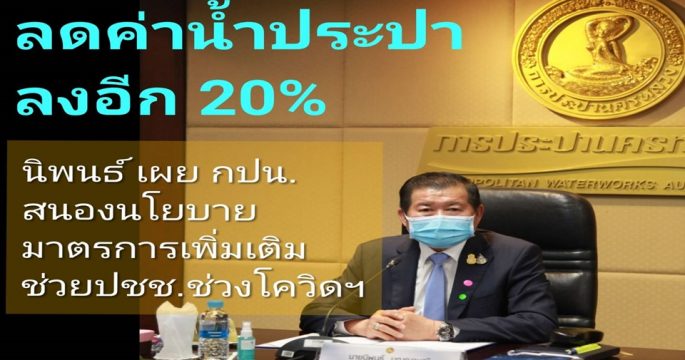 รมช.มหาดไทย เผยบอร์ด กปน.ออกมาตรการเพิ่มเติม 4+1 ลดค่าน้ำประปาอีก 20% บรรเทาความเดือดร้อนประชาชนช่วงวิกฤติโควิด