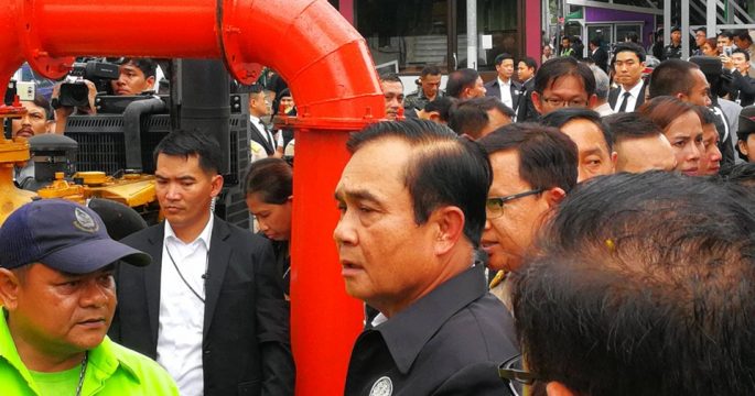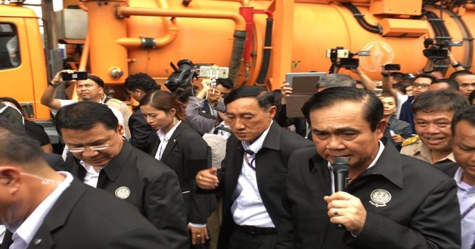 นายกฯตรวจระบบริหารจัดการน้ำที่สถานีสูบน้ำพระโขนง ย้ำประชาชนร่วมแก้ปัญหาไม่ทิ้งขยะให้อุดตันท่อ พร้อมหนุนงบสร้างโรงสูบน้ำเพิ่ม