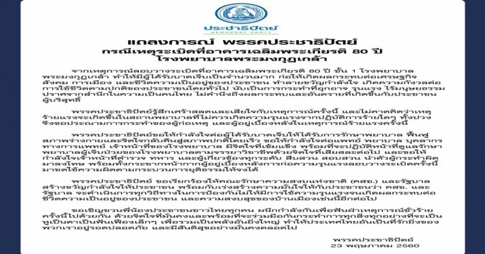 ปชป.ประณามผู้ก่อเหตุระเบิดที่รพ.พระมงกุฎเกล้า ไม่มีสำนึกเป็นคนไทย ให้กำลังใจเจ้าหน้าที่ทั้งแพทย์ พยาบาล หน่วยงานมั่นคง