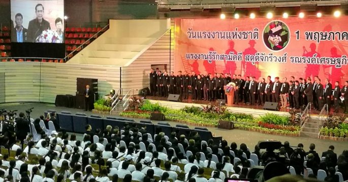นายกฯ เปิดงานวันแรงงานแห่งชาติปี 60 ย้ำยกระดับคุณภาพ เพิ่มรายได้แรงงานไทย ก้าวสู่ไทยแลนด์ 4.0 ขออย่าเชื่อคำบิดเบือนในโซเชียล ยืนยันไม่คิดเลิกโครงการ 30 บาท