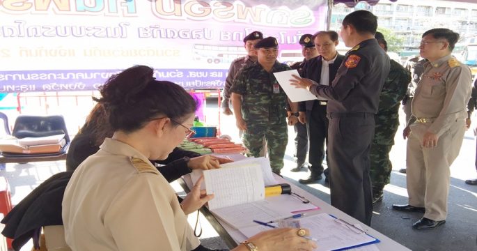 รองผบ.พล.ร.9 ตรวจการให้บริการประชาชนเดินทางกลับภูมิลำเนาช่วงสงกรานต์ที่ขนส่งสายใต้ ย้ำทุกภาคส่วนทำงานเต็มที่ คนขับไม่ดื่มแอลกอฮอล์
