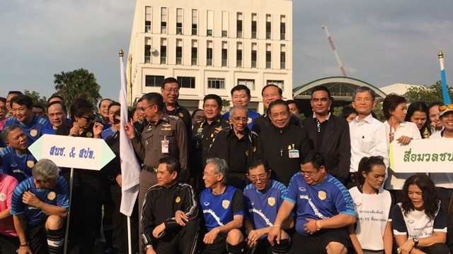 นายกรัฐมนตรีนำข้าราชการออกกำลังกายประจำสัปดาห์ พร้อมร่วมเตะตะกร้อกับทีมงาน