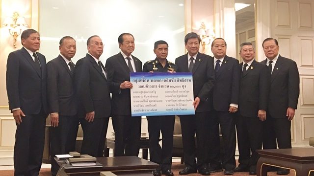 กลุ่มเพื่อนผบ.ทบ.มอบข้าวสารให้กองทัพบก 10,000 ถุง เตรียมนำไปประกอบอาหารบริการประชนที่มาถวายบังคมพระบรมศพ ประกอบเลี้ยงทหารชั้นผู้น้อย