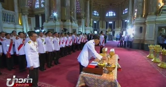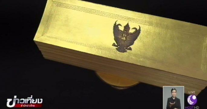 วันนี้จะมีพระราชพิธีประกาศใช้รัฐธรรมนูญแห่งราชอาณาจักรไทย พุทธศักราช 2560 สำนักข่าวไทย อสมท นำเสนอรายงานพิเศษ ขั้นตอนสำคัญในการจารึกรัฐธรรมนูญลงในสมุดไทย 3 ฉบับ